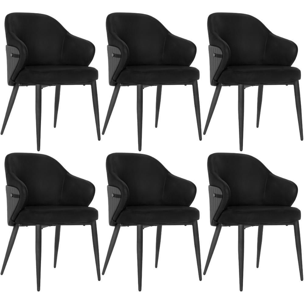 Kit 6 Cadeiras De Jantar Estofada Milano Design Italiano Com Encosto Ergonômico - Preto/cinza