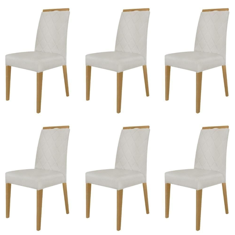 Kit 6 Cadeiras De Jantar Estofadas Madeira Maciça Multimóveis Cr15022 Madeirado-Bege
