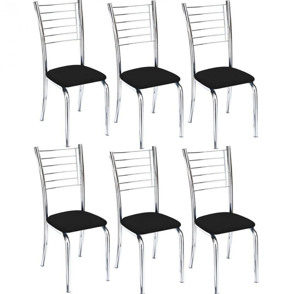 Kit 6 Cadeiras De Jantar Lara Cromada Para Cozinha Em Aço Super Resistente Assento Sintético Preto - Aurora Line