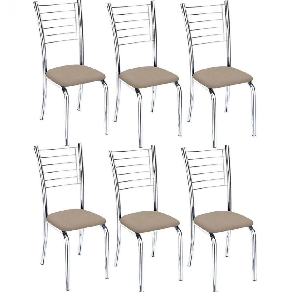 Kit 6 Cadeiras De Jantar Lara Cromada Para Cozinha Em Aço Super Resistente Suede Bege - Aurora Line