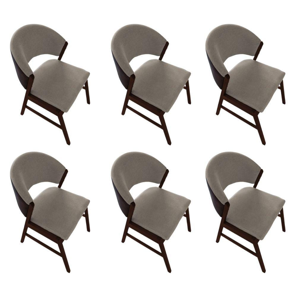 Kit 6 Cadeiras De Jantar Madeira Maciça Débora Em Facto Ocre Bege Linho Castanho