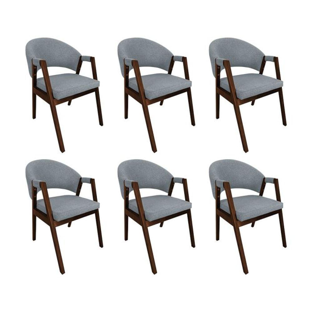 Kit 6 Cadeiras De Jantar Madeira Maciça Helen Impermeável Mel Cinza Linho