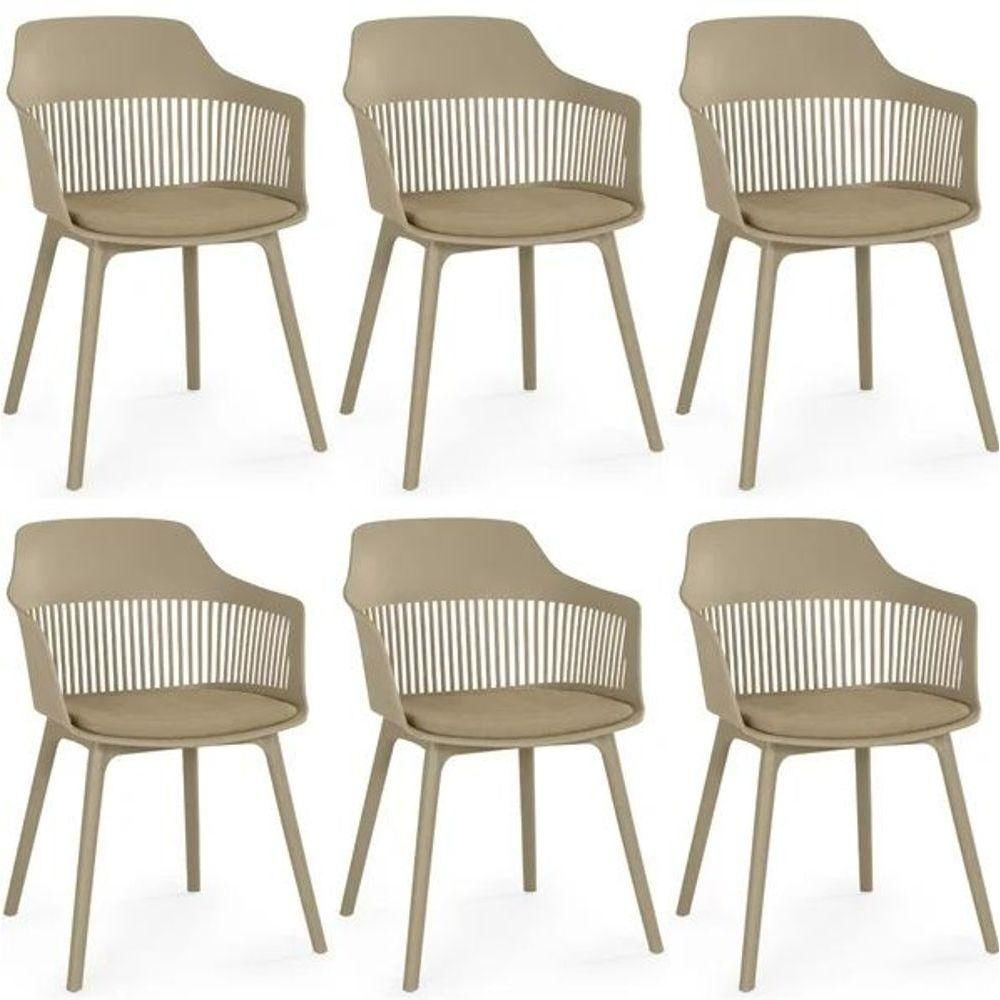 Kit 6 Cadeiras De Jantar Montreal Marcela Design Moderno Liso Nude