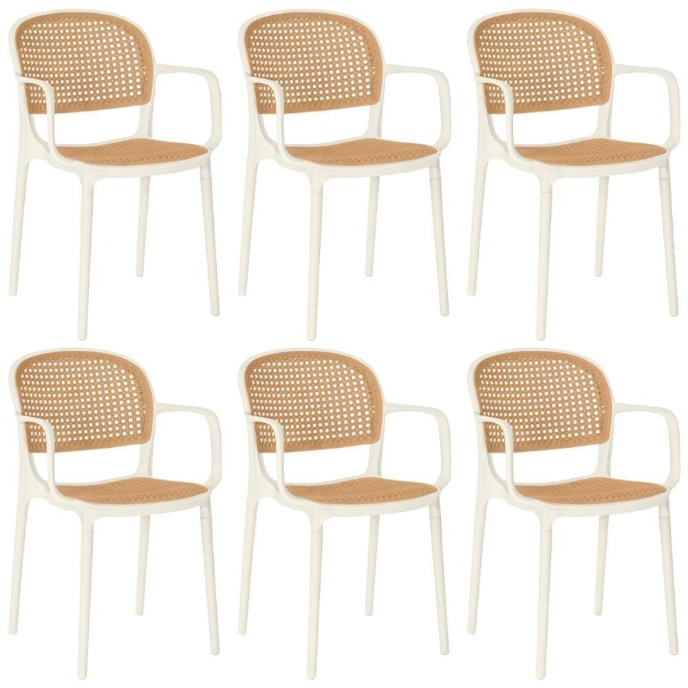 Kit 6 Cadeiras De Jantar Roma Prática Com Braços Para Sala E Cozinha - Bege