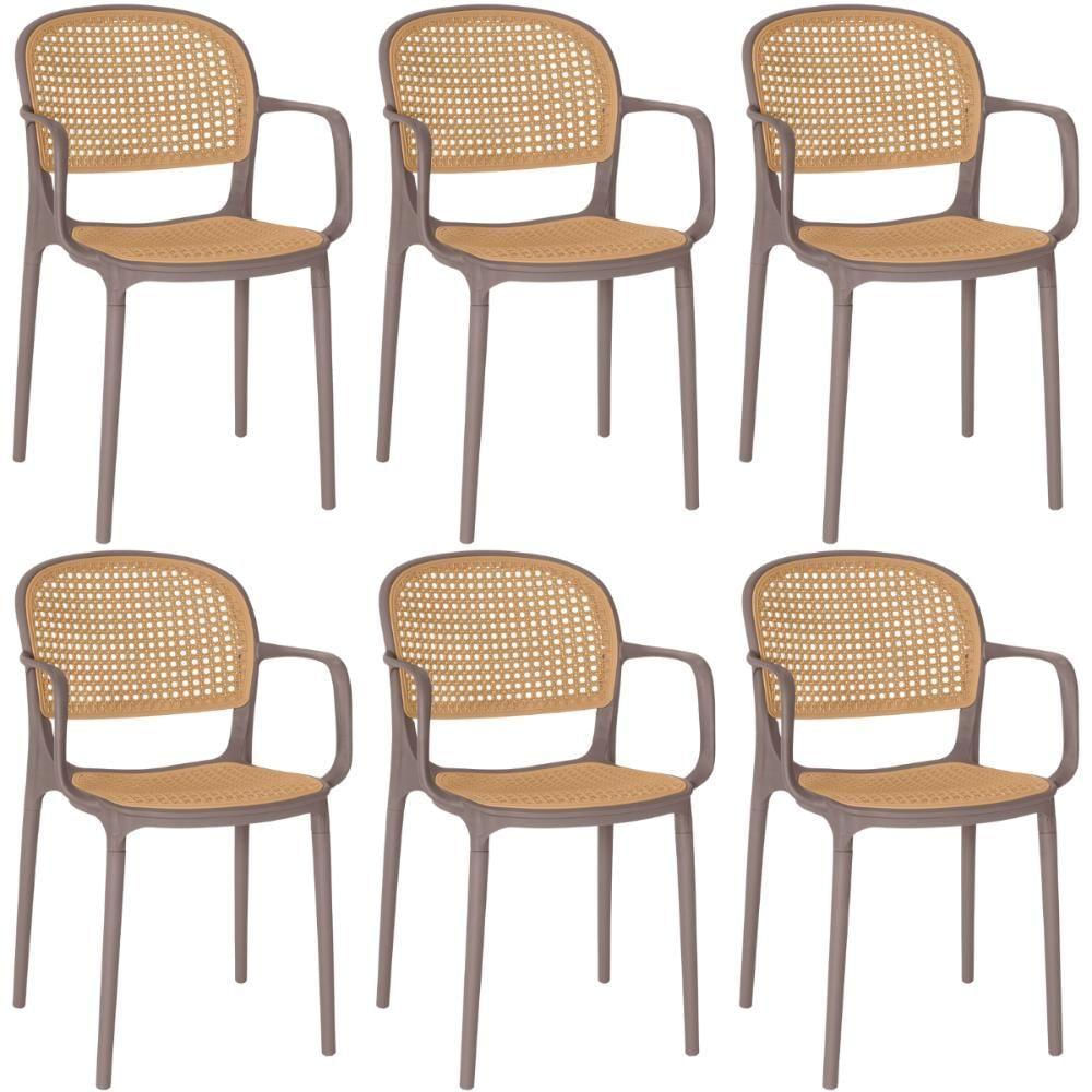 Kit 6 Cadeiras De Jantar Roma Prática Com Braços Para Sala E Cozinha - Marrom Claro