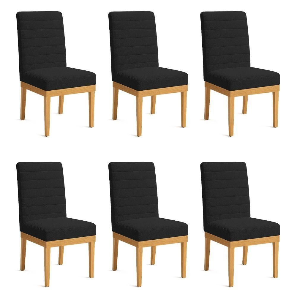 Kit 6 Cadeiras De Jantar Solana Boucle Preto Base De Madeira - Pallazio