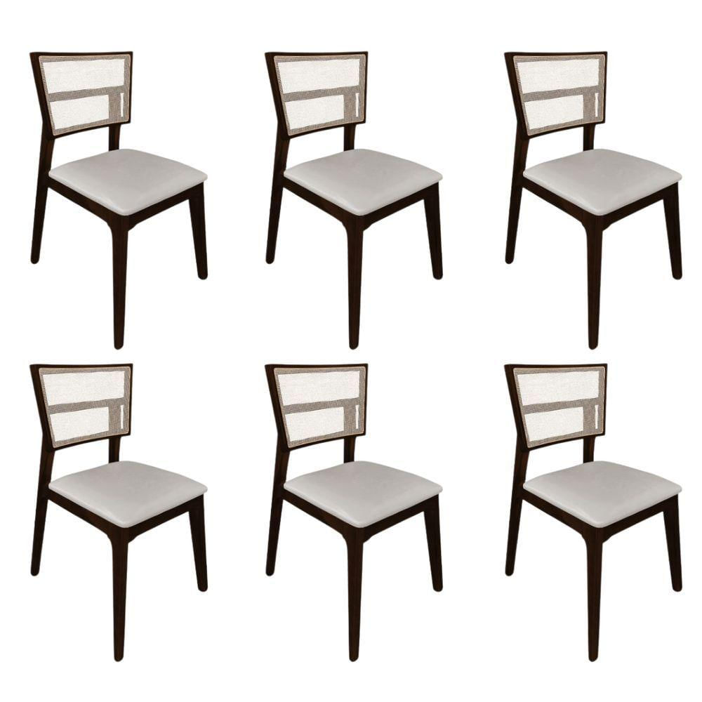 Kit 6 Cadeiras De Jantar Tela Premium Madeira Maciça Manuela Bege Veludo Castanho
