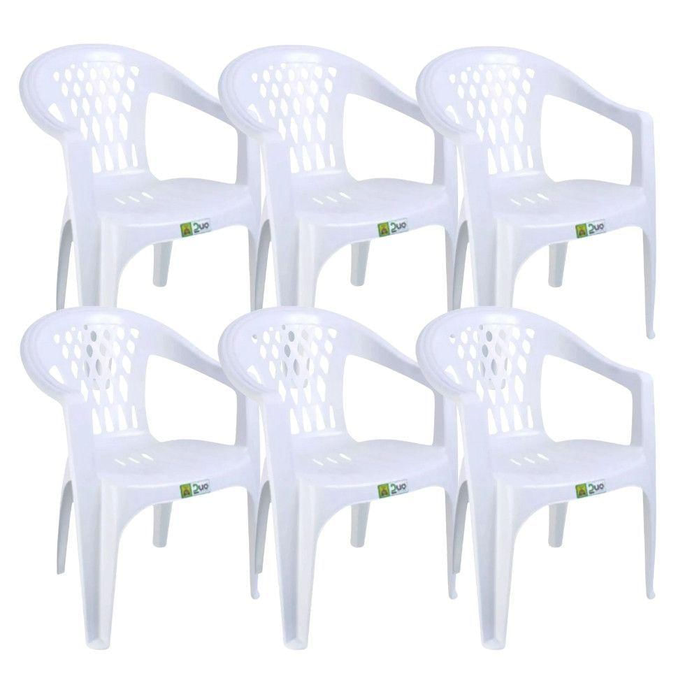 Kit 6 Cadeiras De Plástico Com Braço Duo Bella Duoplastic Branco