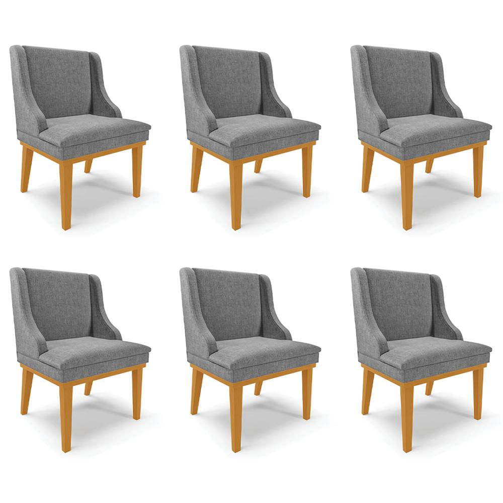 Kit 6 Cadeiras Decorativas Sala de Jantar Base Fixa de Madeira Firenze Linho Grafite/Castanho G19 - Gran Belo