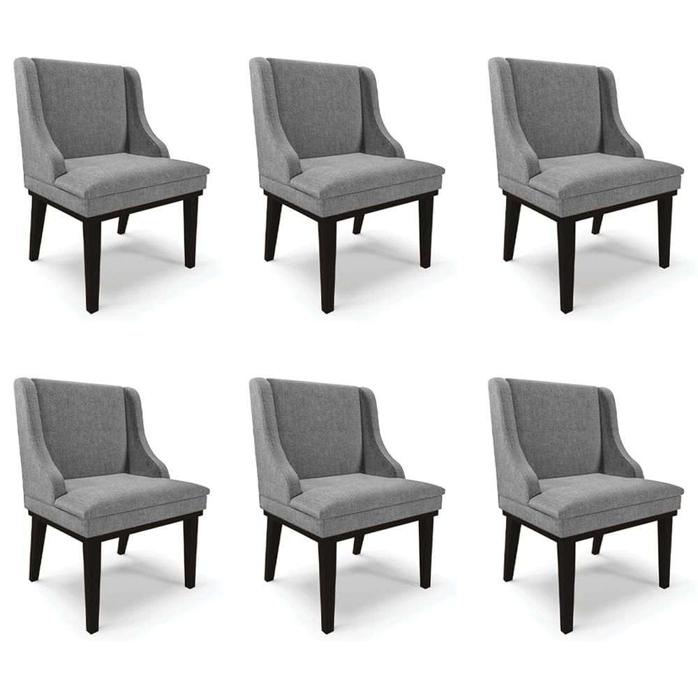 Kit 6 Cadeiras Decorativas Sala de Jantar Base Fixa de Madeira Firenze Linho Grafite/Preto G19 - Gran Belo