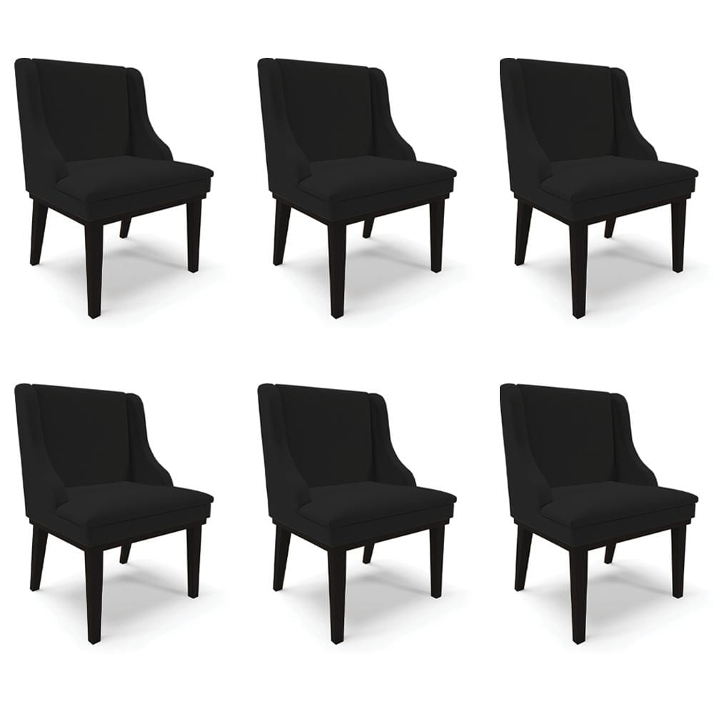 Kit 6 Cadeiras Decorativas Sala de Jantar Base Fixa de Madeira Firenze Linho Preto G19 - Gran Belo