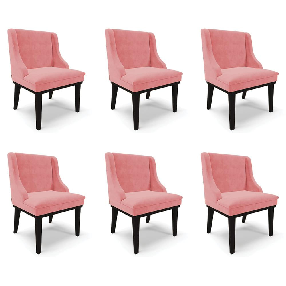Kit 6 Cadeiras Decorativas Sala de Jantar Base Fixa de Madeira Firenze Suede Rosê/Preto G19 - Gran Belo