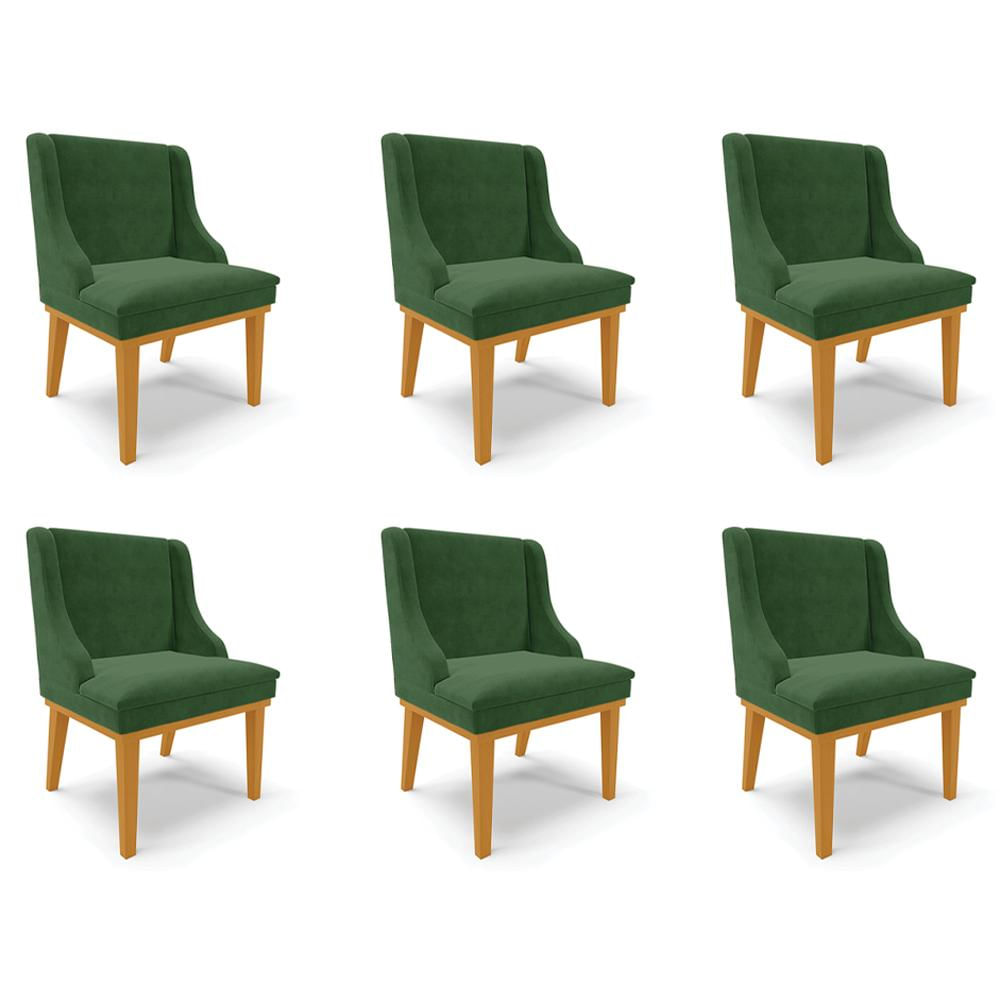 Kit 6 Cadeiras Decorativas Sala de Jantar Base Fixa de Madeira Firenze Suede Verde/Castanho G19 - Gran Belo