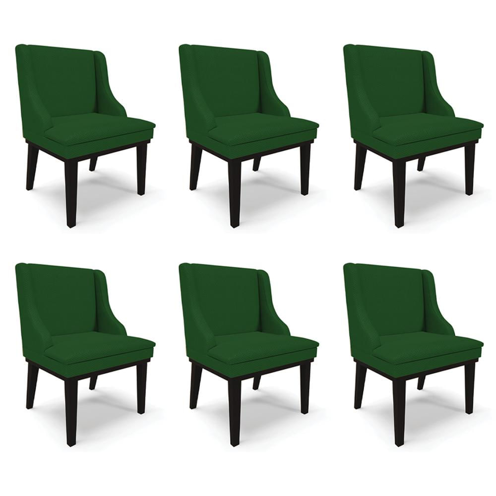 Kit 6 Cadeiras Decorativas Sala de Jantar Base Fixa de Madeira Firenze Veludo Luxo Verde/Preto G19 - Gran Belo