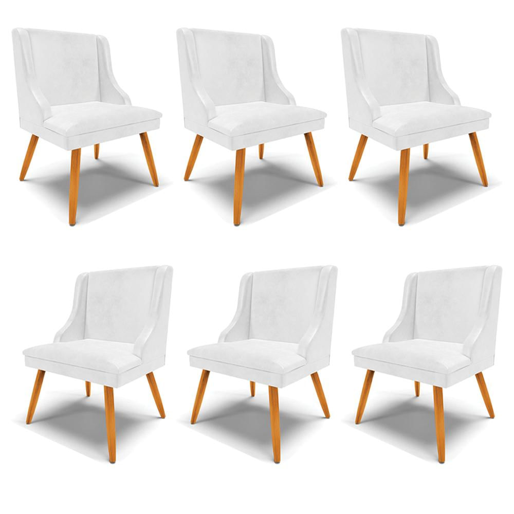 Kit 6 Cadeiras Decorativas Sala de Jantar Pés Palito de Madeira Firenze PU Branco Brilho/Natural G19 - Gran Belo
