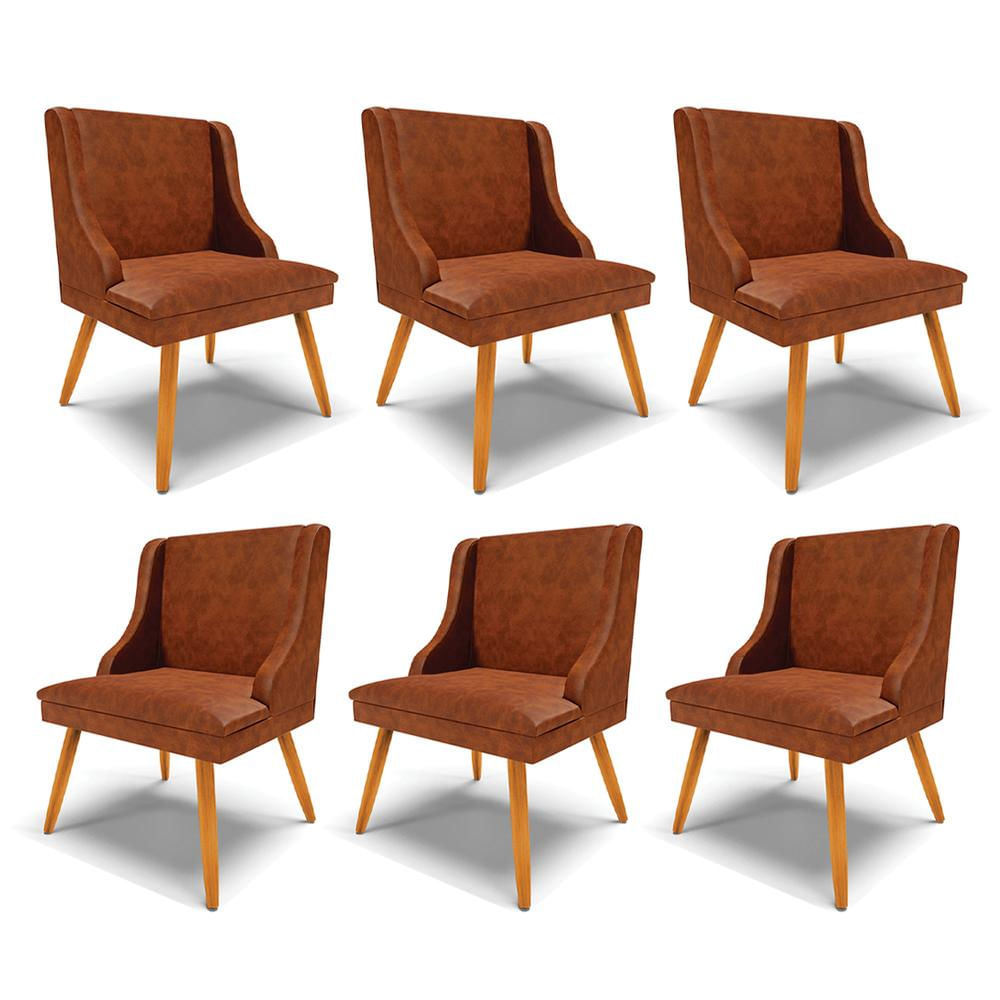 Kit 6 Cadeiras Decorativas Sala de Jantar Pés Palito de Madeira Firenze PU Nozes/Natural G19 - Gran Belo