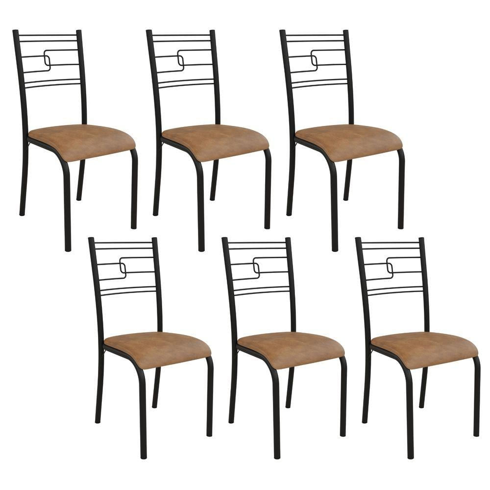 Kit 6 Cadeiras Ella Estrutura Em Aço Preto E Tecido Jambo