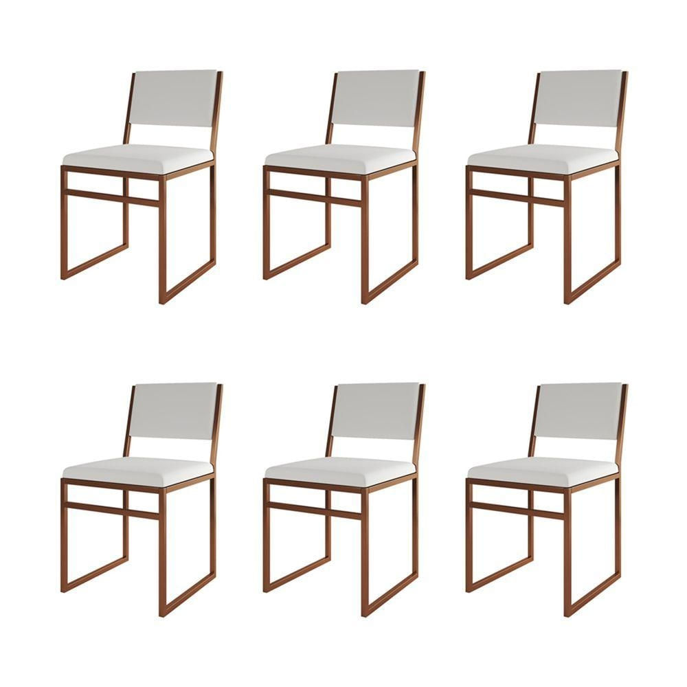 Kit 6 Cadeiras Industrial Isa Corino Branco Base Cobre Para Mesa Sala Cozinha - Cobre-branco