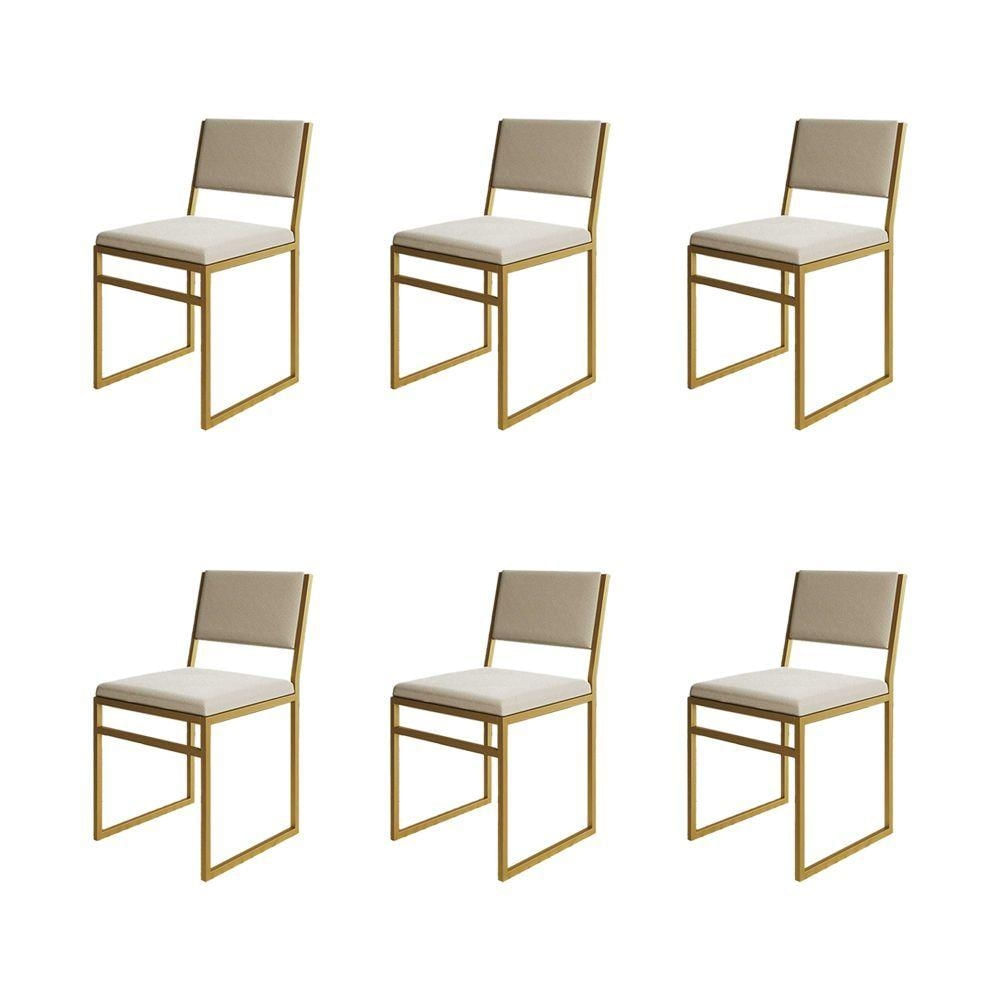 Kit 6 Cadeiras Industrial Isa Veludo Bege Base Dourado Para Mesa Sala Cozinha - Dourado-bege