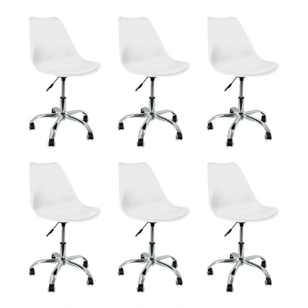 Kit 6 Cadeiras Luisa Saarinen Giratória, Home Office, Regulagem De Altura, Branco