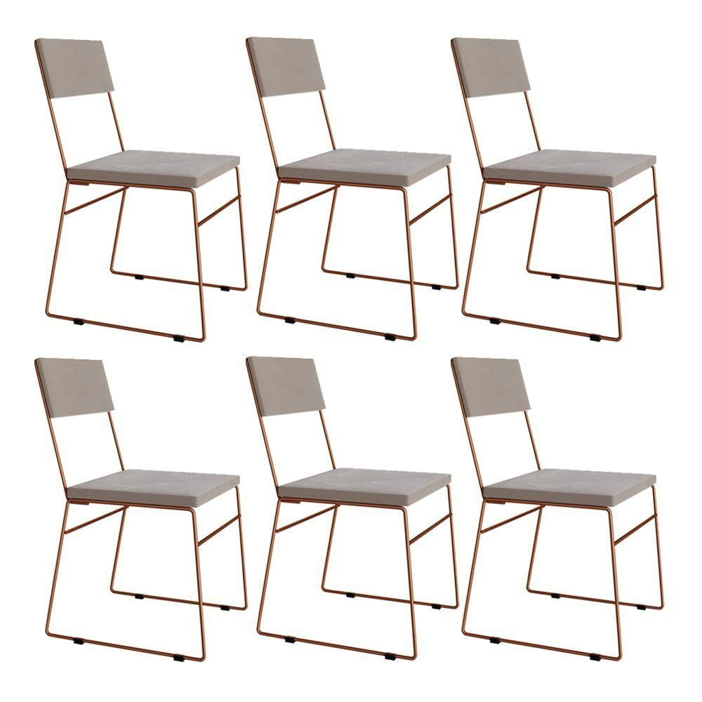 Kit 6 Cadeiras Málaga Veludo Bege Base Cobre Para Mesa Sala Cozinha - Cobre-bege