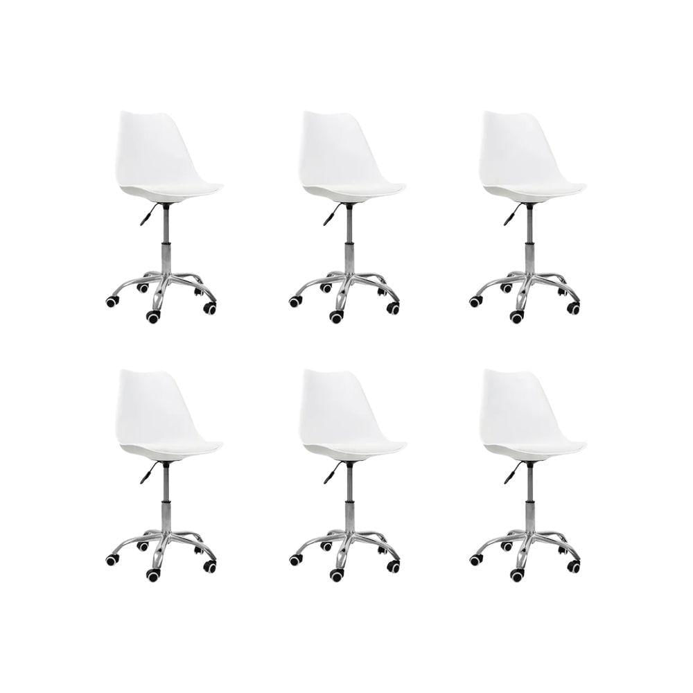 Kit 6 Cadeiras Office Base Cromada Com Rodizio Giratória Saarinen Branco
