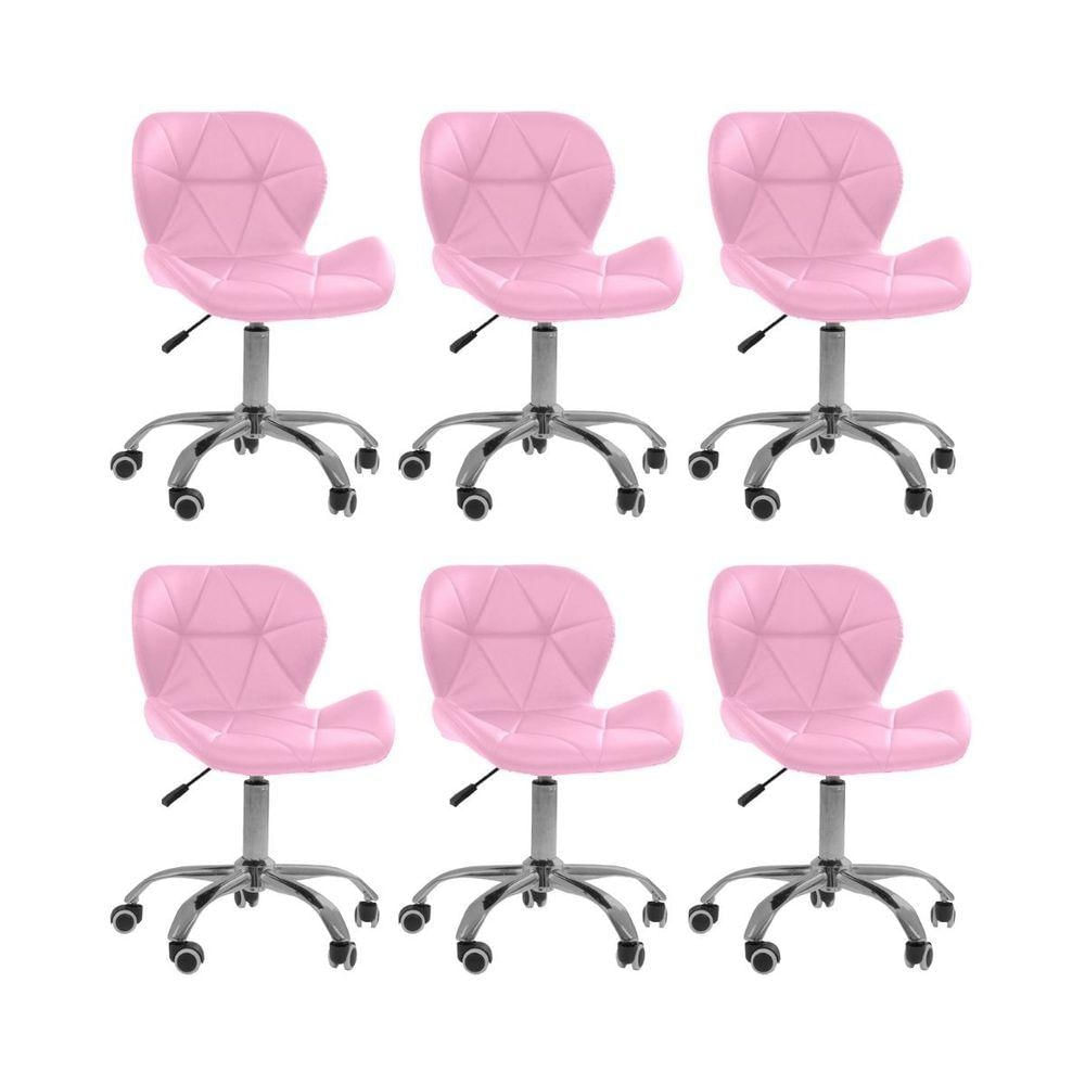 Kit 6 Cadeiras Office Eiffel Slim Ajustável Oficial Rosa