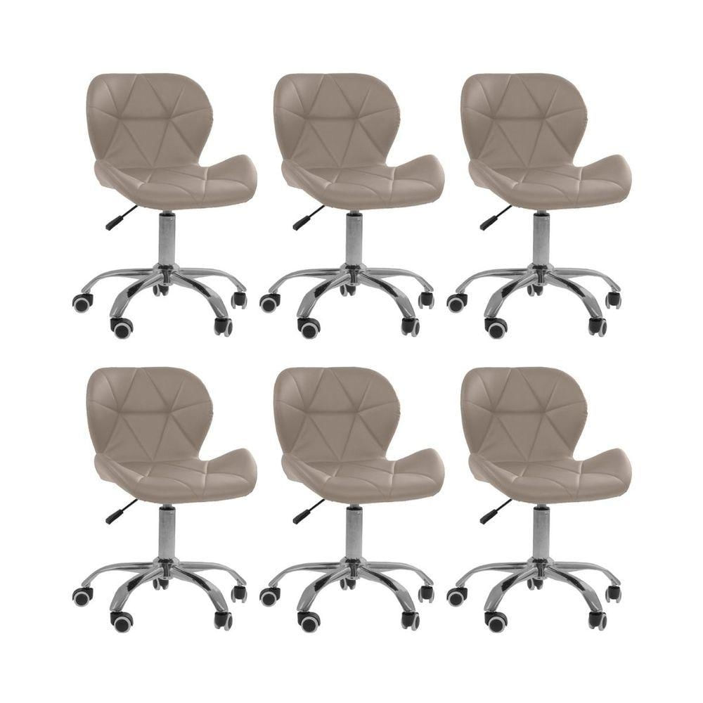 Kit 6 Cadeiras Office Eiffel Slim Oficial Giratória Bege