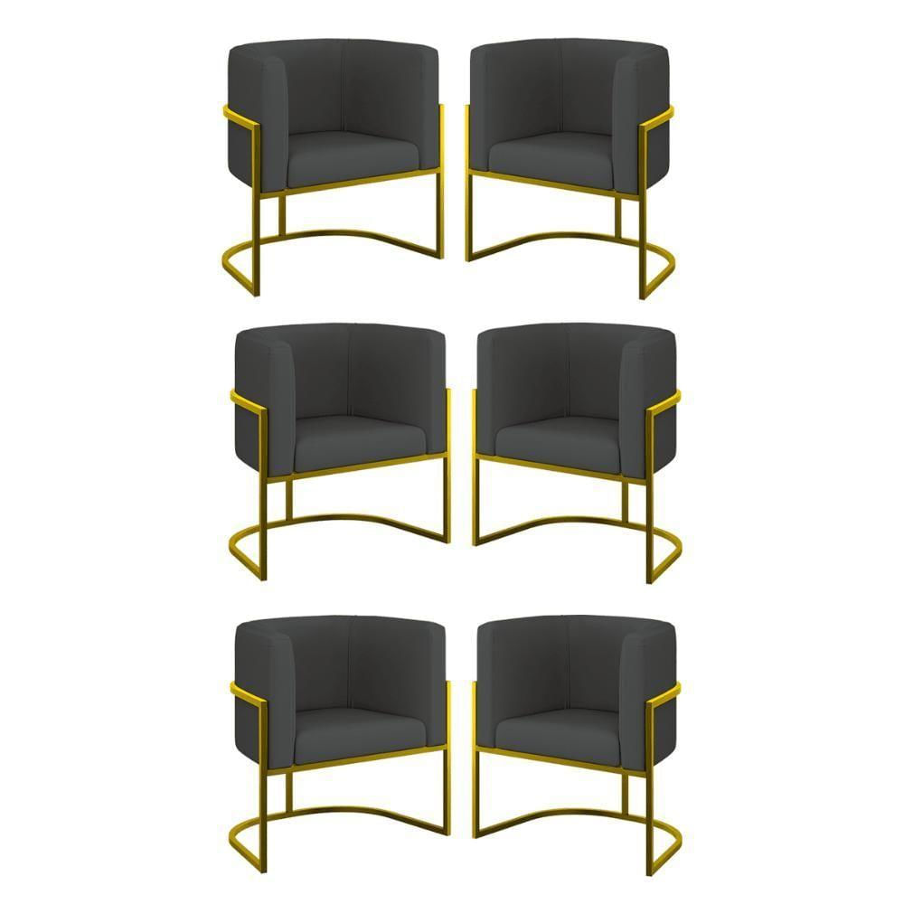 Kit 6 Cadeiras Poltrona Lua Corino Sala Quarto Gold Balaqui Cor:cinza Cinza