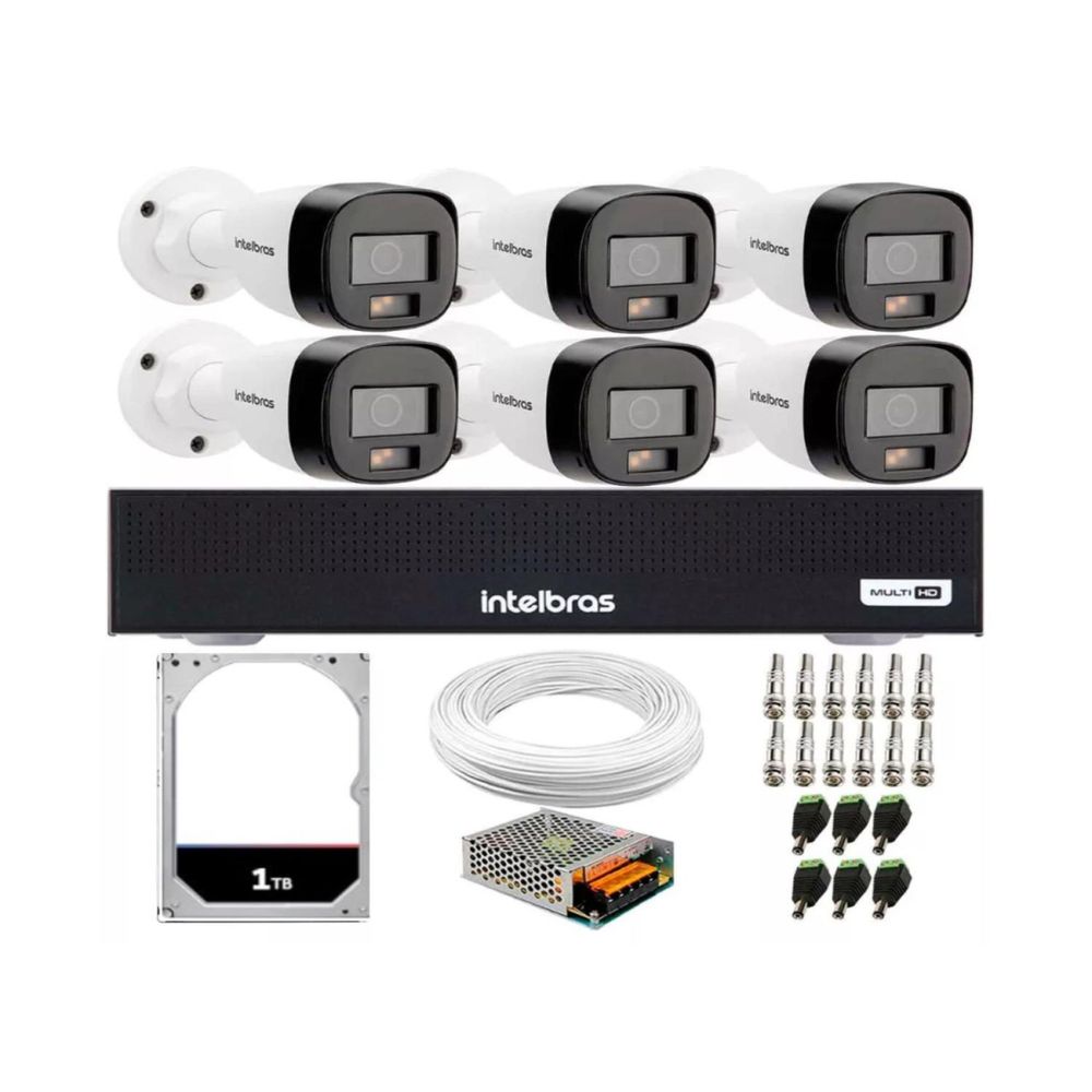 Kit 6 Câmeras VHD 1220B Full Color Full HD 1080p + Gravador MHDX Multi Hd 8 Canais + HD 1TB