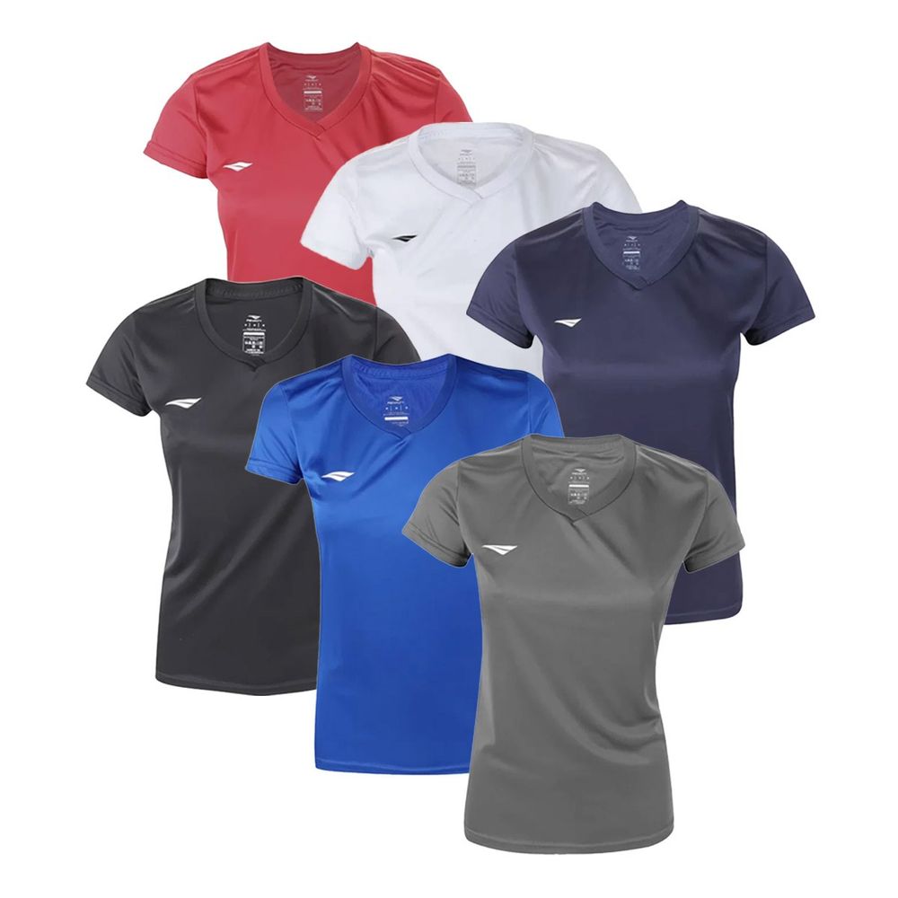 Descrição: O Kit 6 Camisetas Penalty X Feminino é a escolha perfeita variar os looks para as atividades físicas. Sua confecção de poliéster é leve e confortável, ideal para seus treinos. Contam ainda com a tecnologia Dry One, que proporciona secagem rápida e ágil absorção do suor para o exterior do tecido. Possuem gola V com acabamento canelado e modelagem mais justa, aumentando seu estilo. Design clean com a logo da fabricante estampada ao lado direito do peito. Cores: vermelho, branco, marinho, preto, royal e chumbo. Medidas aproximadas (cm): P: 41x58 / M: 43x60 / G: 45x62 / GG: 47x64 (Largura x Comprimento).