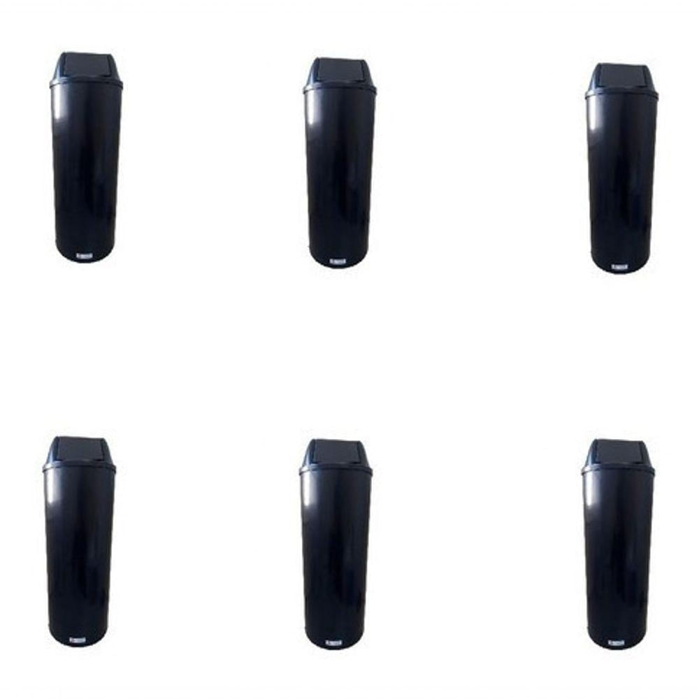Kit 6 Lixeiras Cesto Alto com Tampa Vai-vem 22L Plástico para Cozinha e Escritório Preto