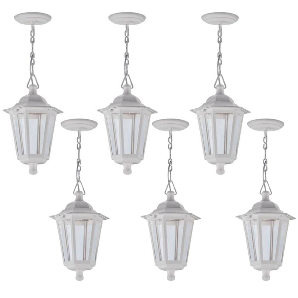 Kit 6 Luminárias Pendentes 58cm Branco Externo Colonial E27 Termoplástico Grega Dital