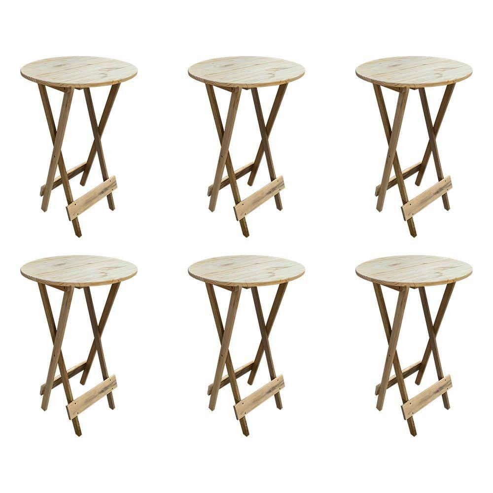 Kit 6 Mesas Bistrô Redondas Dobráveis Em Madeira Padrão - Sem Pintura / Crua - Marrom