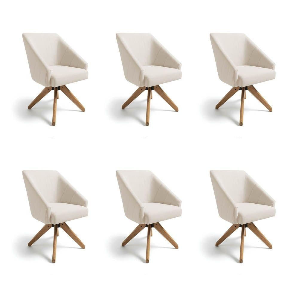 Kit 6 Poltronas Giratórias Alana Linho Base De Madeira - Pallazio Cor Bege