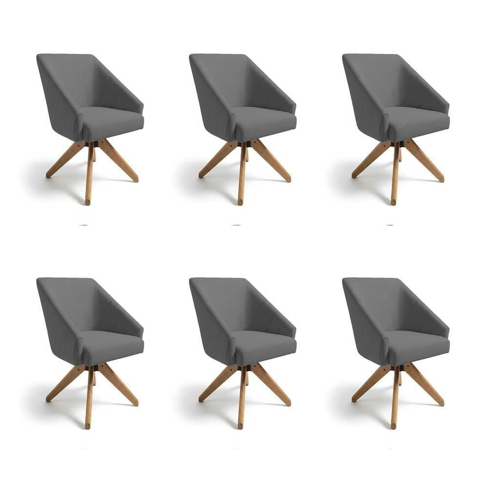 Kit 6 Poltronas Giratórias Alana Linho Base De Madeira - Pallazio Cor Grafite