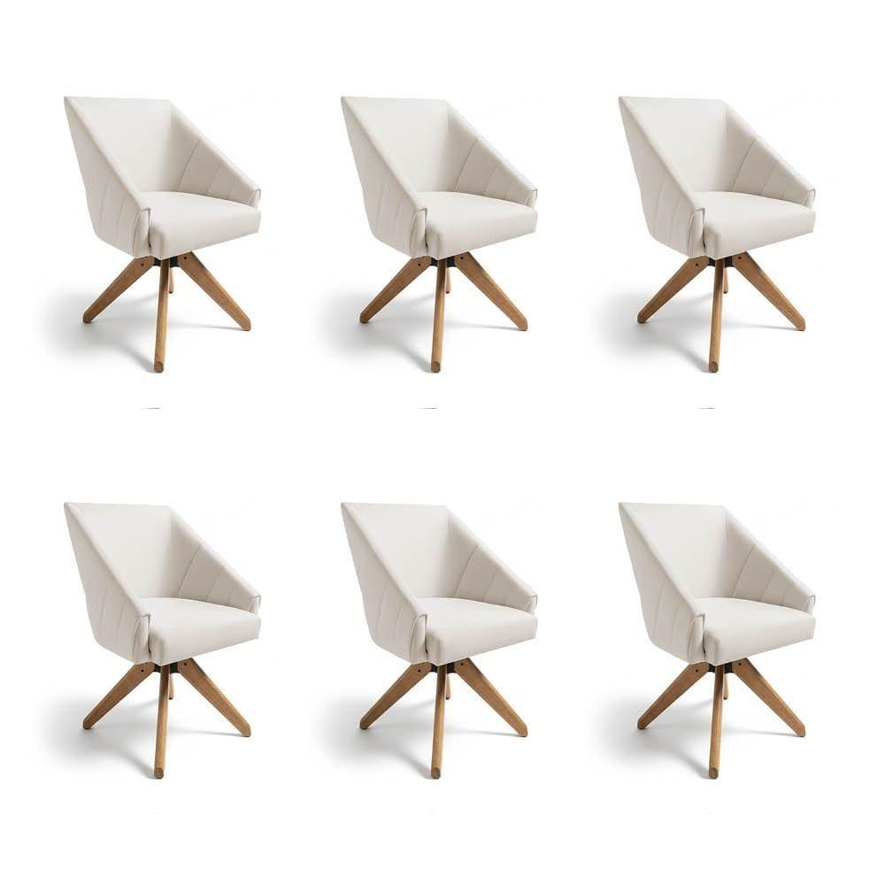 Kit 6 Poltronas Giratórias Alana Suede Bege Base De Madeira - Pallazio