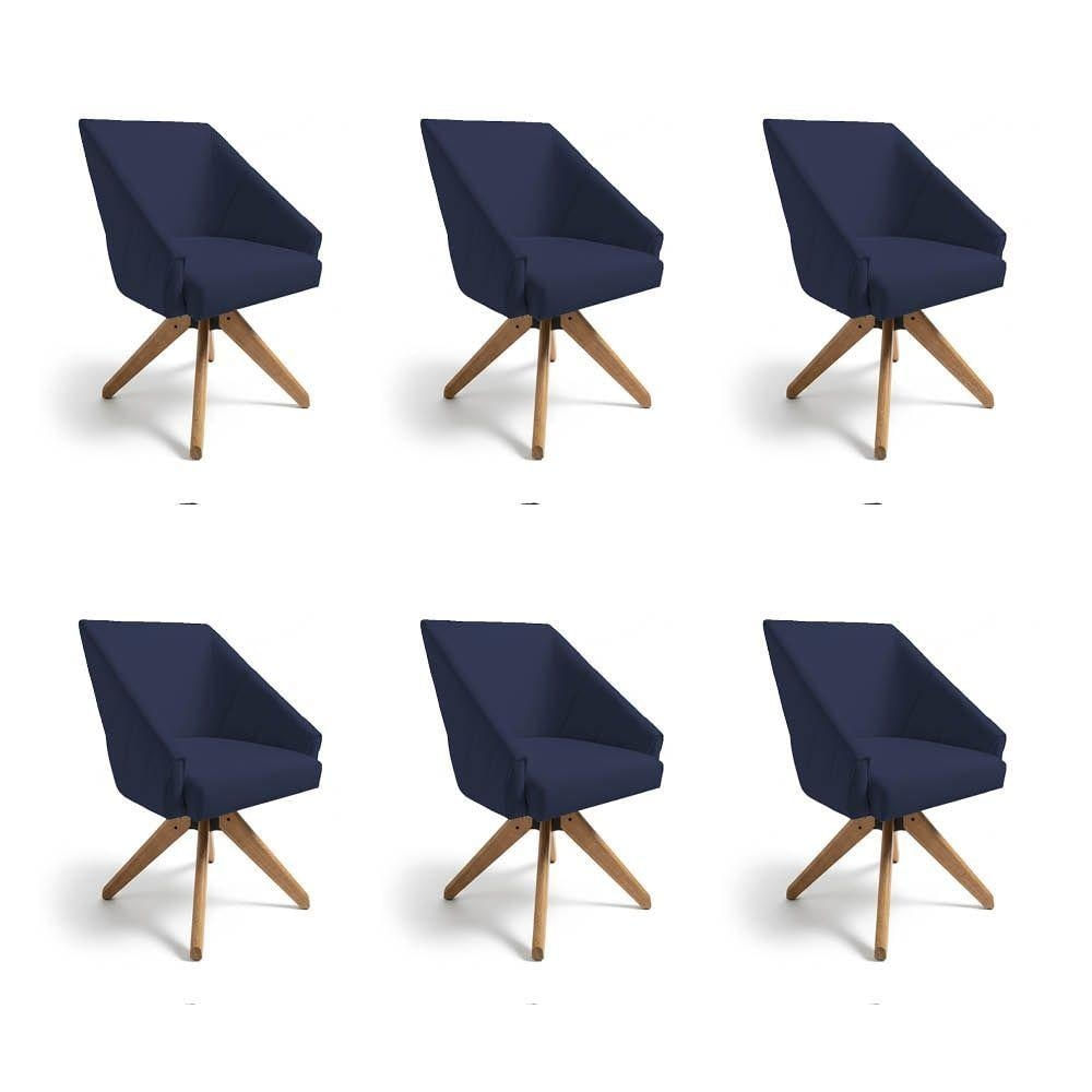 Kit 6 Poltronas Giratórias Alana Veludo Base De Madeira - Pallazio Cor Azul Marinho