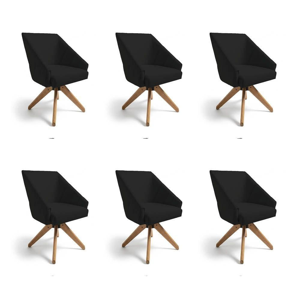 Kit 6 Poltronas Giratórias Alana Veludo Base De Madeira - Pallazio Cor Preto
