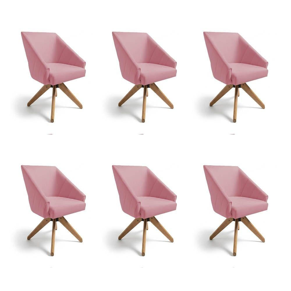 Kit 6 Poltronas Giratórias Alana Veludo Base De Madeira - Pallazio Cor Rosê