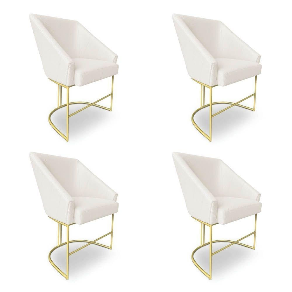 Kit 6 Poltronas Luxo Alana Bouclê Base Ferro Dourado - Pallazio Cor Bege