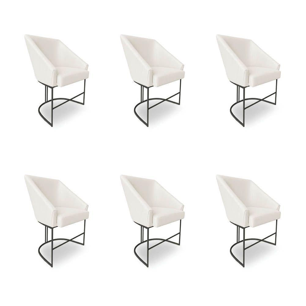 Kit 6 Poltronas Luxo Alana Bouclê Base Ferro Preto - Pallazio Cor Bege