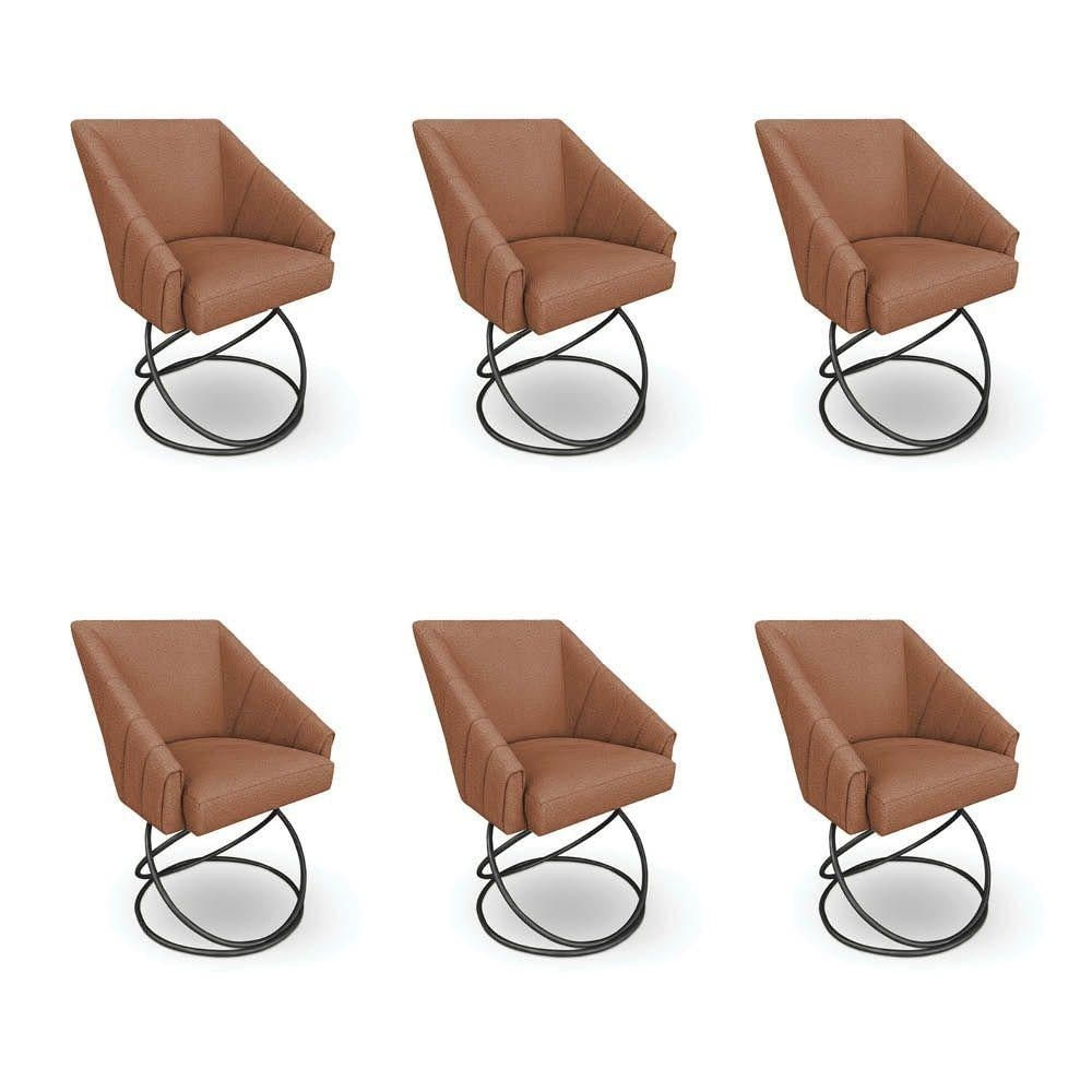 Kit 6 Poltronas Luxo Alana Bouclê Terracota Base Luxo Preto - Pallazio