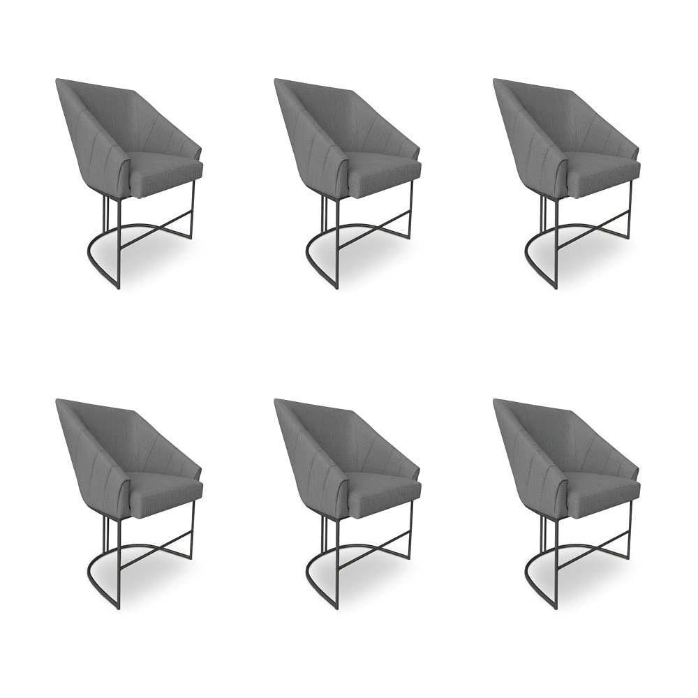 Kit 6 Poltronas Luxo Alana Linho Base Ferro Preto - Pallazio Cor Grafite