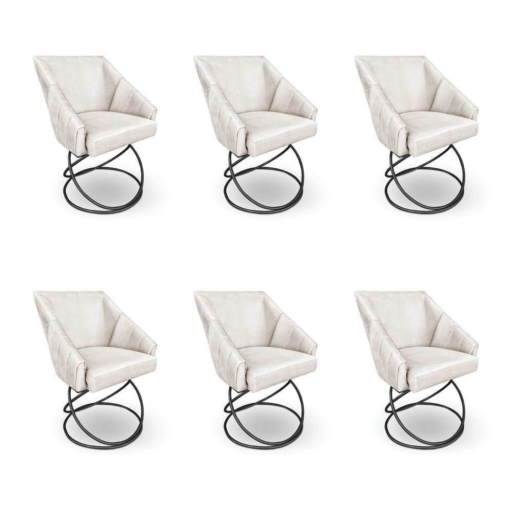 Kit 6 Poltronas Luxo Alana Suede Base Luxo Preto - Pallazio Cor Bege
