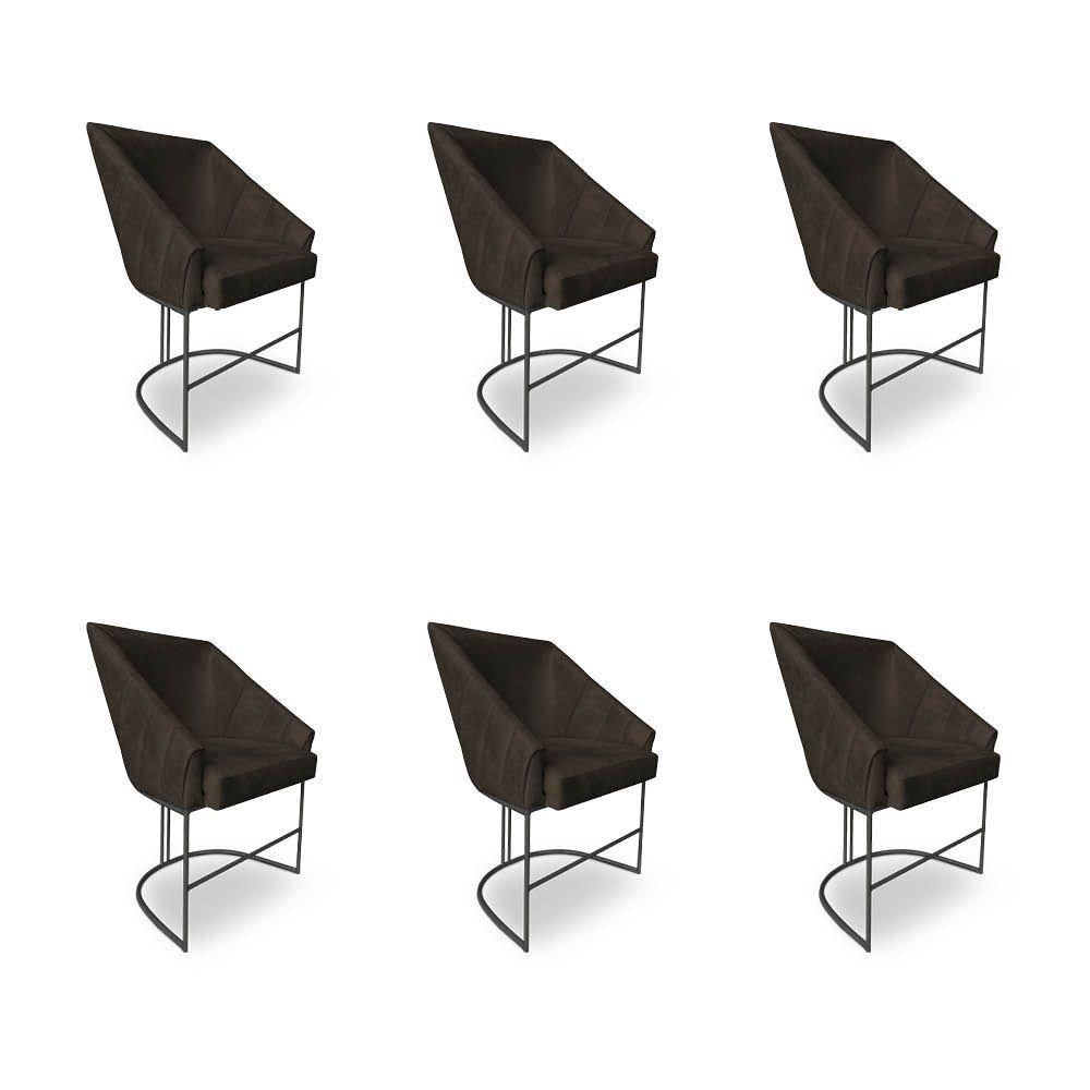 Kit 6 Poltronas Luxo Alana Suede Marrom Base Ferro Preto - Pallazio