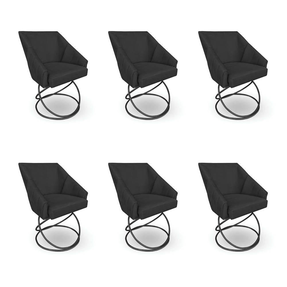 Kit 6 Poltronas Luxo Alana Suede Preto Base Luxo Preto - Pallazio