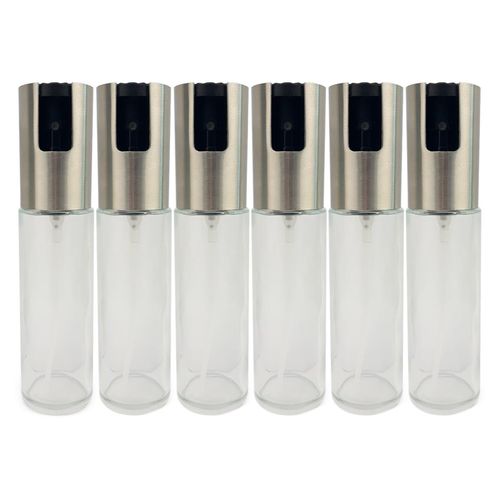 kit 6 Spray Pulverizador Borrifador Dosador Para Azeite Vinagre Frasco De Vidro Acabamento Aço Inoxidável