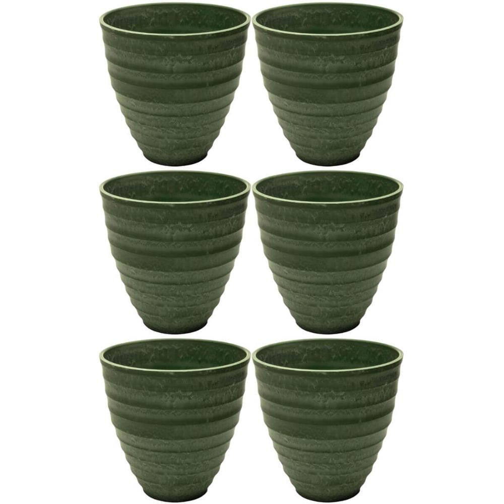 Garantia: 90 dias / Peso total: 1,716kg / Cor predominante: verde / Ref: 7898775144622 Dimensões de cada: 15cm (D) x 7cm (A); Conteúdo: 6 vasos cachepots; Material: polipropileno (PP);