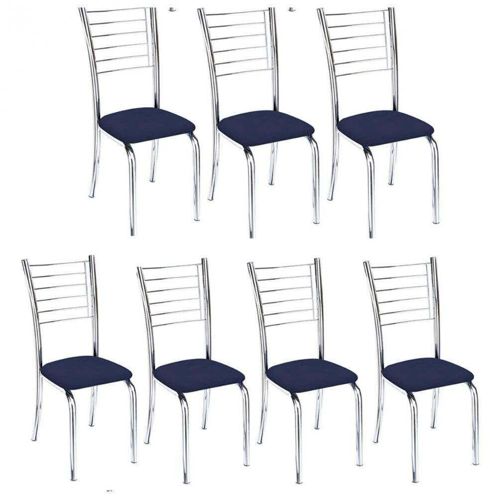 Kit 7 Cadeiras De Jantar Lara Cromada Para Cozinha Assento Corino Azul Marinho - Aurora Line